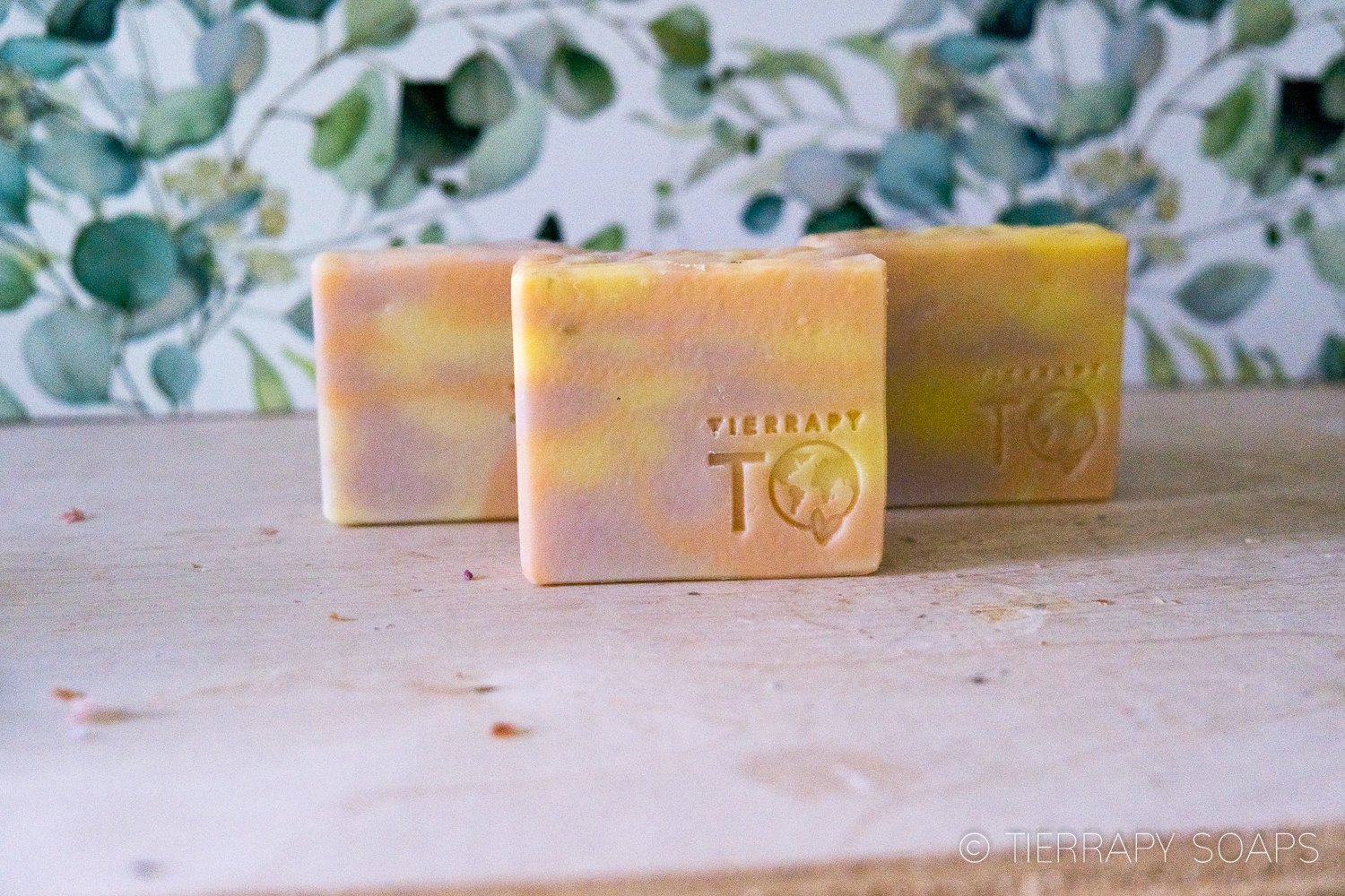 Scented with the invigorating blend of juicy mango and fresh papaya, DAWN BREAK offers a sweet and tangy fragrance that lingers on your skin, creating a sensory experience that is both invigorating and soothing. The dainty, delicate orange, yellow and pink swirls within the soap represent the start of a new day, with the sun peeking over the horizon.