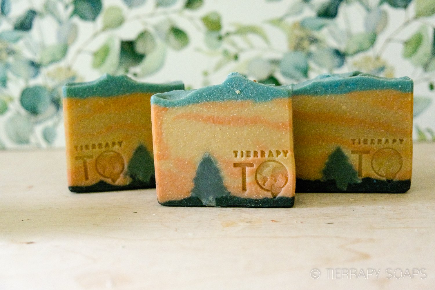 Golden Valley is a vibrant soap inspired by orchards at sunset, where colors glow against the silhouette of trees. Bursting with the sweet and tangy aroma of cranberry, crisp fall apples, and spices, it’s as warm and inviting as a fall harvest. Swirls of orange, yellow, and blue capture the beauty of a golden sky fading into twilight. A nourishing bar that brings a touch of autumn’s magic to your daily routine.